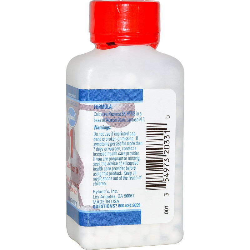 Formula: Calcarea fluorica 6X HPUS in a base of acacia gum, lactose N.F.