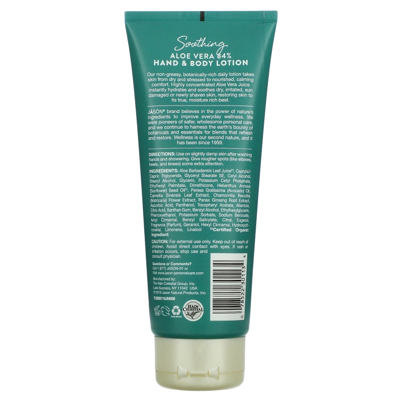 Jason Natural, Чистый натуральный лосьон для рук и тела, 84% успокаивающая алоэ вера, 8 унций (227 г)