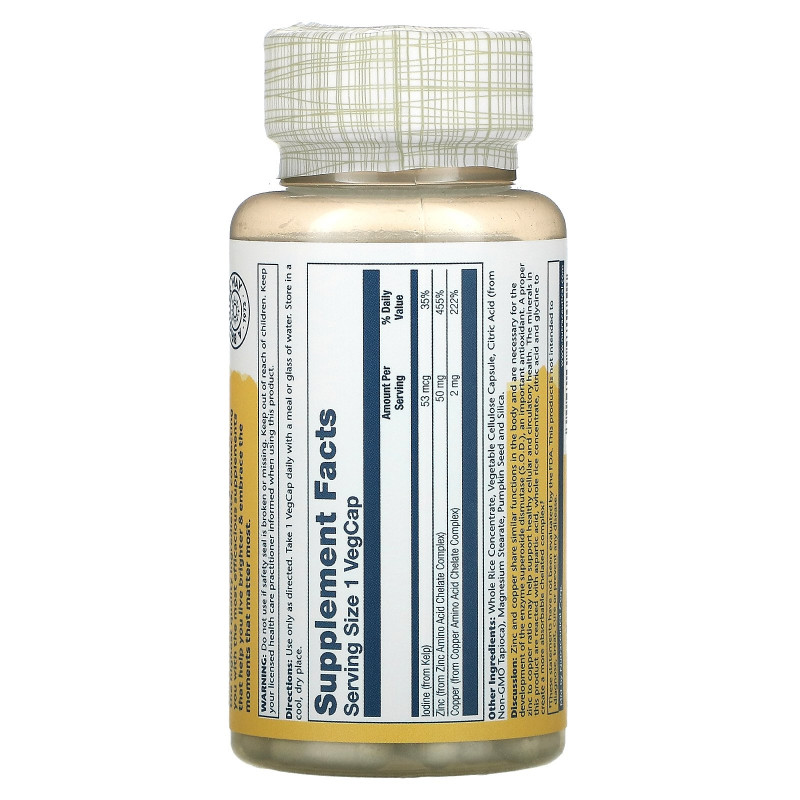 Solaray, Цинк медь, 100 вегетарианских капсул